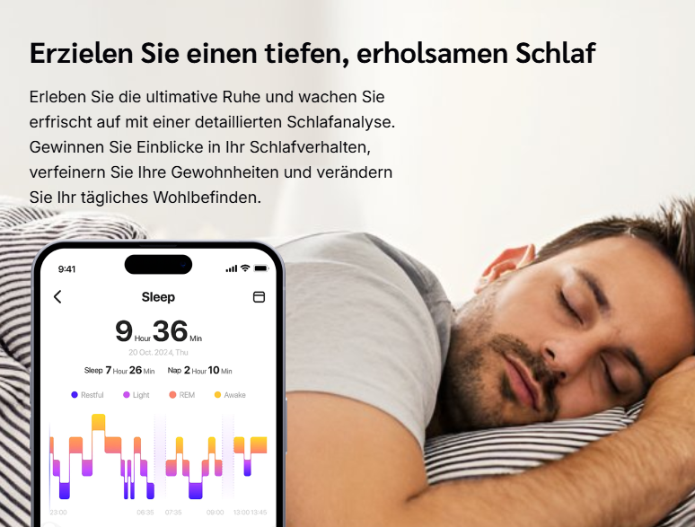 Echtzeit-Gesundheitsdaten: Verfolge Herzfrequenz, Stress und Schlaf rund um die Uhr – für mehr Kontrolle über dein Wohlbefinden.